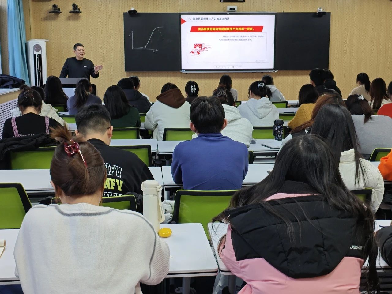 李军围绕“把握新质生产力的内涵特征,树立科技报国理想”这一主题,从新质生产力的基本内涵、核心标志、本质内容以及重要意义四个方面进行了详细解读,深刻阐述了社会主义的根本任务和新时代新质生产力的关系,指出了新质生产力是符合新发展理念的先进生产力质态、科技创新是发展新质生产力的核心要素。接着,他立足工作机制,紧密联系当下中国国情,深入浅出地剖析了发展新质生产力的有效方法与实践路径。他着重指出高质量发展作为首要任务的关键地位,呼吁并勉励入党积极分子们在今后的学习生活里,秉持终身学习理念,持续增进自身科技素养,磨砺创新思维,锤炼过硬创新能力。学生们认真聆听,深入探讨,会后纷纷表示将以此次党课为契机,更加深入地学习党的理论和路线方针政策,不断提升自己创新能力,为新质生产力赋能经济发展贡献青春力量。