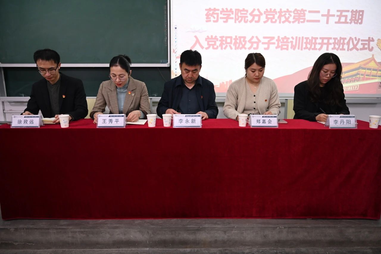 开班仪式于庄严的国歌声中正式拉开序幕。李永新作动员讲话,他对新一批入党积极分子的加入表示热烈的欢迎与衷心的祝贺,并提到入党积极分子要以饱满的热情夯实理论基础,练就过硬的政治定力,始终坚持真抓实干,用理论联系实际,真正做到学用结合,他希望入党积极分子应做到自觉遵守纪律规范,端正学习态度,树立正确的入党动机,在各方面积极向党组织靠拢。随后郑嘉会宣读了《药学院入党积极分子培训班考核办法》。学员们纷纷表示会按照党员标准严格要求自己,提升思想觉悟和理论水平,争做新时代有理想、有追求、有担当、有作为的合格大学生。