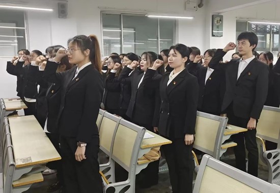最后,全场党员凝神肃立,跟随领誓人进行入党宣誓。