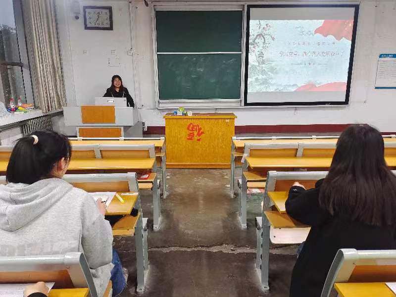 岳琳琳以“学习党章,做合格入党积极分子”为题,讲述了自己的入党历程,告诫全体入党积极分子要端正入党动机,确立马克思主义的科学信仰,在日后的生活与学习中,以党员的标准严格要求自己,做好模范带头作用,争取早日加入党组织。随后,通过视频《中国抗疫图鉴》,岳琳琳教导全体入党积极分子要做好个人疫情防控,用自己的行动去为抗疫做出自己的贡献,不惧风雨、勇担重任。最后,通过观看视频《后浪》,岳琳琳向入党积极分子强调,要履行吃苦在前,享受在后,克己奉公的义务。并引用视频中的话语“一个国家最好看的风景,就是这个国家的年轻人”,鼓励入党积极分子应当以青春之名,奋斗当下、不负韶华、砥砺前行,要永葆青春活力,拥抱青春事业。至此,本次党课圆满结束。