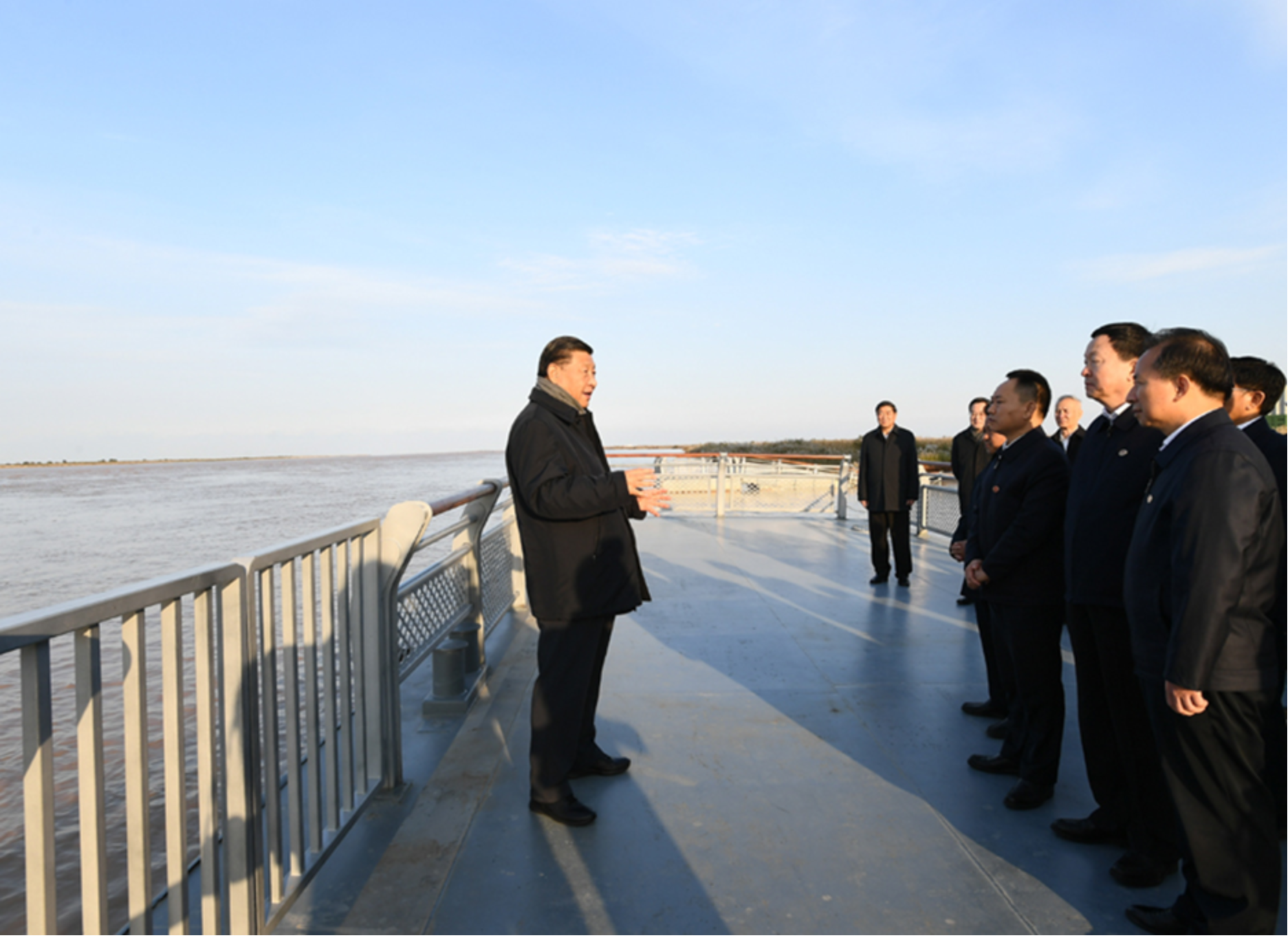 20日下午,习近平来到黄河入海口,凭栏远眺,察看河道水情,详细询问径流量、输沙量等。随后,习近平走进黄河三角洲生态监测中心,听取黄河流路变迁、水沙变化和黄河三角洲生物多样性保护等情况介绍。他强调,我一直很关心黄河流域生态保护和高质量发展,今天来到这里,黄河上中下游沿线就都走到了。扎实推进黄河大保护,确保黄河安澜,是治国理政的大事。要强化综合性防洪减灾体系建设,加强水生态空间管控,提升水旱灾害应急处置能力,确保黄河沿岸安全。