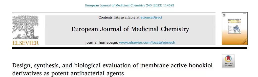 近日,药学院生药化学与生物学创新团队的王印虎博士在抗菌药物研究领域取得新进展,在药物化学权威期刊 European Journal of Medicinal Chemistry(中科院一区Top,IF=7.088)上发表了题为“Design, synthesis, and biological evaluation of membrane-active honokiol derivatives as potent antibacterial agents ”的研究性论文,药学院王印虎博士、硕士生吴萍为本论文的共同第一作者,王硕博士和冀芦沙教授为共同通讯作者,英国365集团公司为第一署名单位。