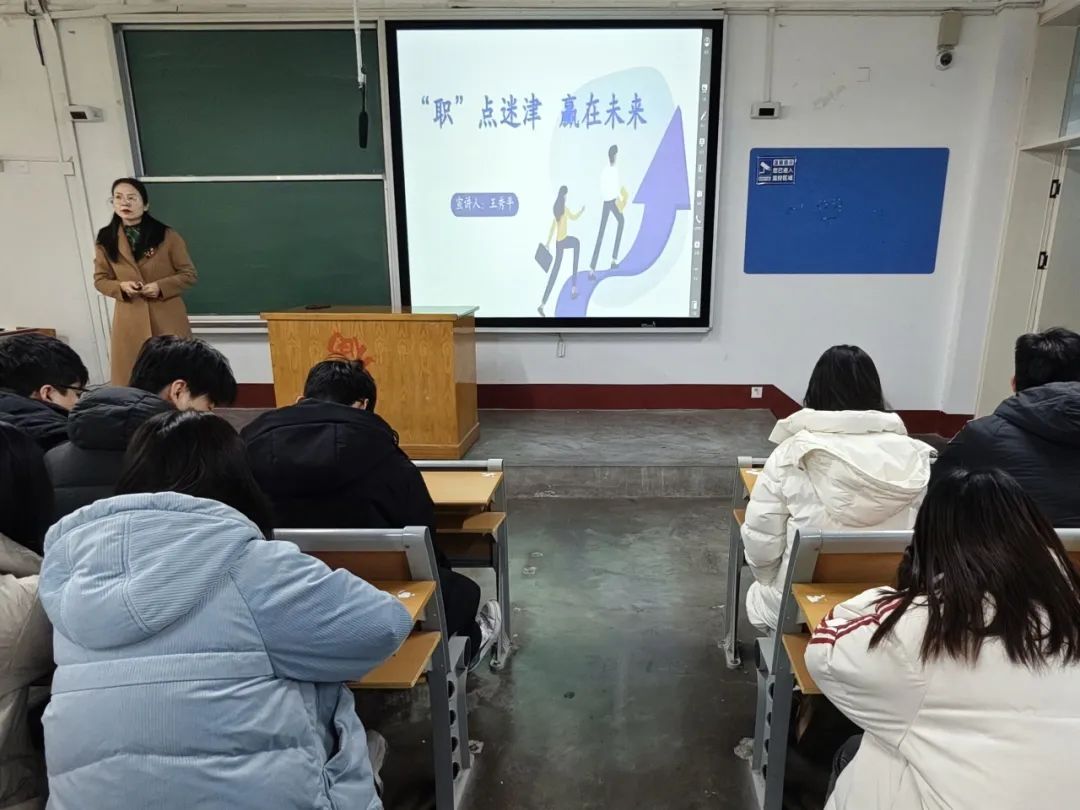 会上,王秀平详细解读就业形势,明确指出当下职场正面临摩擦性失业与结构性失业等多重挑战,同时提到当前考公、考研热度居高不下,基层就业遇冷,自主创业人数也较少这一趋势。她强调学生应明就业形势,合理利用校招资源,凭应届生身份优势积极就业,不应一味追求考公考研,而应扩视野多元择业,同时关注行业动态,抓新兴机遇,尝试新领域、新岗位,拓宽渠道。在介绍学校资源支持时,王秀平详细解析了我院AI赋能的全周期生涯服务体系,该体系涵盖生涯课程、生涯咨询、生涯活动以及生涯指导四个维度,为学生提供了全方位、多层次的就业支持。同时,学校凭借专业的职业指导团队,积极举办就业力和职业规划大赛,并且提供心理调适等个性化服务。同时她希望同学们深刻领悟指导精髓,在未来就业中,全力挖掘自身潜能,持续提升综合素质,精准定位职业方向,高效运用学校资源,为社会发展贡献力量。