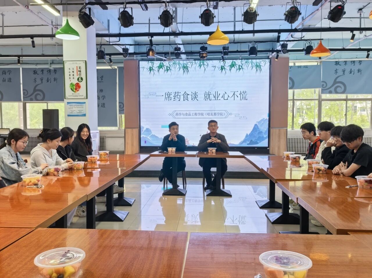 为解决学生实习就业方面的问题,帮助学生明确未来规划方向,4月9日,我院于翰苑餐厅二楼举办以“一席药食谈,就业心不慌”为主题的餐厅沙龙活动,本次活动由辅导员朱兆阔、刘孝源担任主讲人。