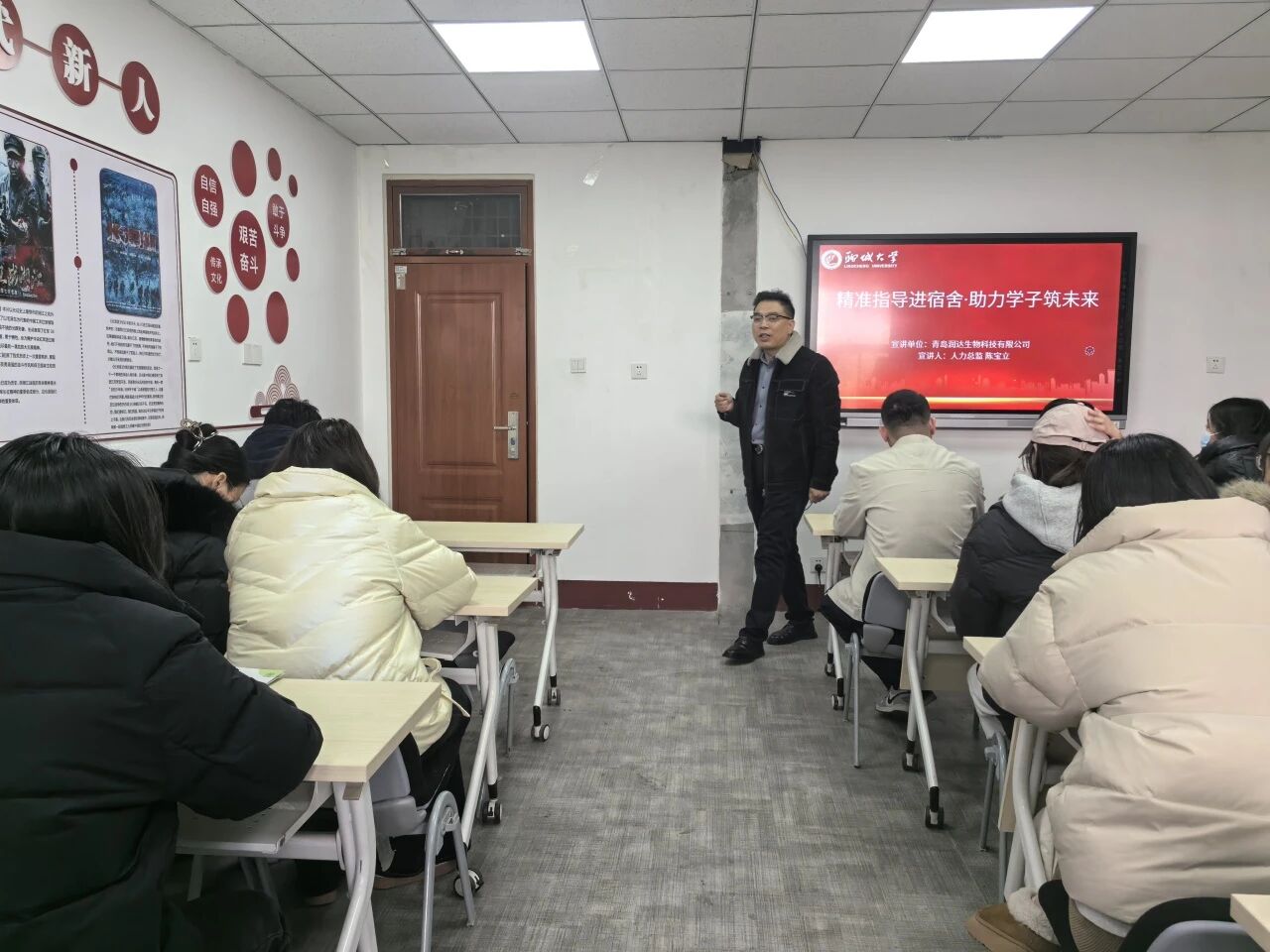 为帮助学生明确职业发展方向,提升就业规划力,3月19日,我院于群星公寓16号楼二楼党建活动室举办以“精准指导进宿舍,助力学子筑未来”为主题的企业分享会,特邀青岛润达生物科技有限公司人力总监陈宝立担任主讲人。