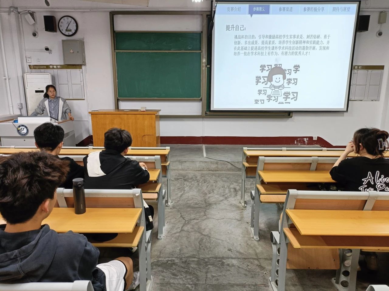 吴越分别从竞赛介绍、参赛意义、参赛渠道、参赛经验分享、期待与展望五个方面展开论述。她从这五方面为学生们提供了宝贵的参考,促使学生们对科技创新大赛有了更深入的了解与认识。吴越多方面分析大创项目的重要性并分享自己的科创经历,告诫学生要加强科技创新类活动储备经验,提高学生在日后的科研项目中的各项能力。此外,她强调保持积极乐观的心态对于应对挑战和困难至关重要,并分享自己在比赛过程中遇到的种种困境,以及她是如何通过调整心态来克服困难。活动结束后,学生们纷纷表示此次活动对自身受益匪浅,对于科创竞赛有了更进一步的了解,并表示未来将会积极地参与到科创类竞赛中去。