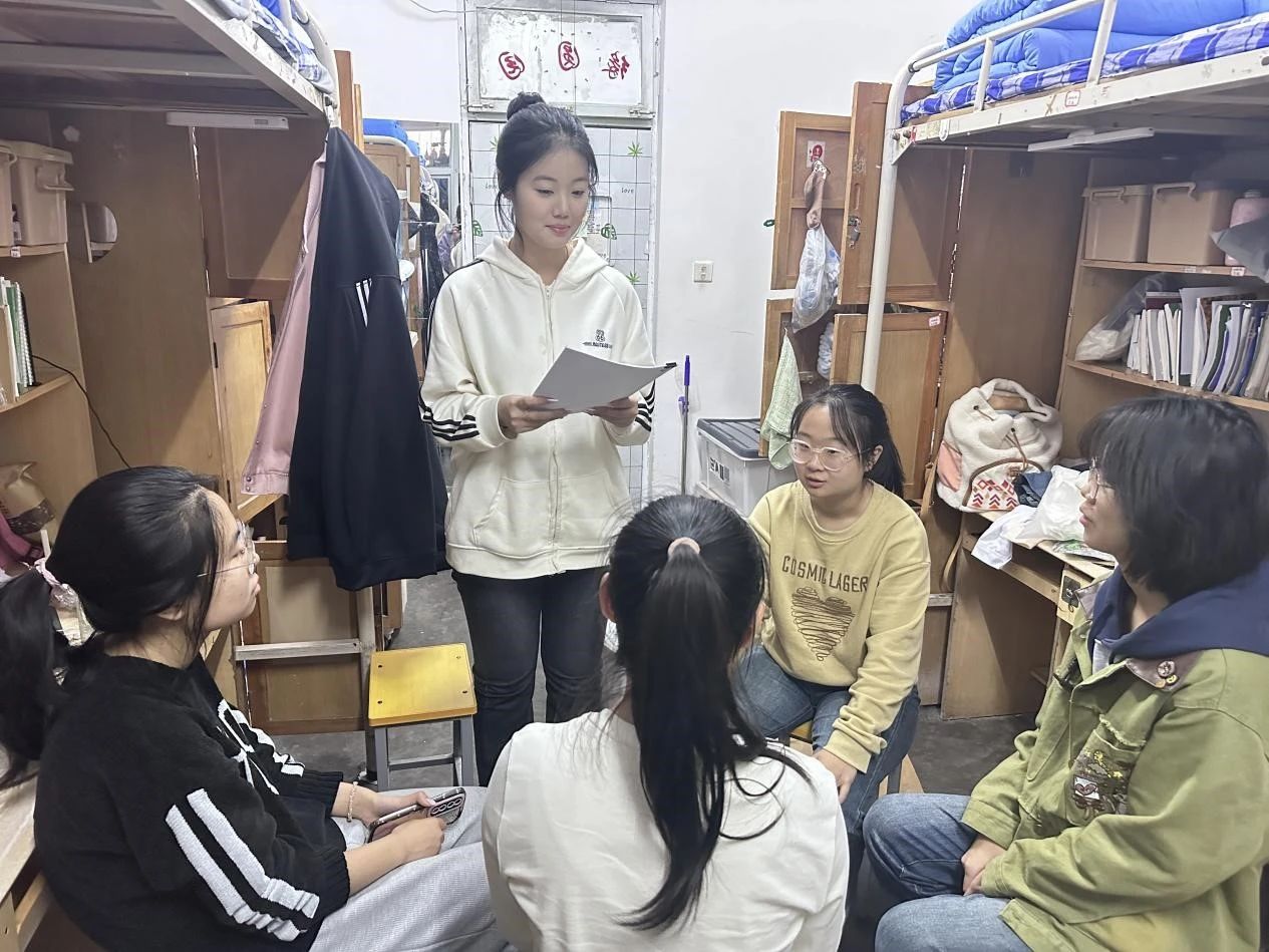 活动伊始,心理朋辈辅导员首先向同学们介绍了本次活动的目的和意义,并通过破冰小游戏帮助同学们尽快熟悉朋辈辅导模式。在游戏环节朋辈辅导员让宿舍成员两两分组,小组内一名同学总结出另一名同学的优缺点并大声喊出,被指出缺点的同学需要大声重复并补充。同学们纷纷表示,通过聆听他人的评价可以更深层次地认识自己。最后大家围坐在一起,朋辈辅导员讲解了增强自信心的重要性和方法,活动洋溢着轻松欢乐的气息。