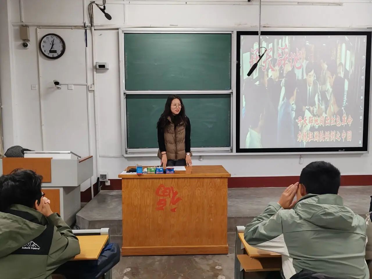 李丹阳以中国崛起之路为切入点,向学生介绍了上个世纪初的中国是怎样处在民族存亡的关头,爱国志士们是怎样探求救国救民的途径,以及中国共产党建立在那个特殊年代的光辉意义。
