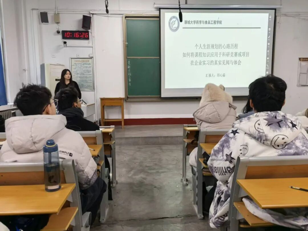 为深化学生对制药工程专业的认知,精准对接“十五五”时期健康优先发展战略要求,12月12日,我院2025级1班团支部于2# 310举办以“蓝图已绘就,青春正当时”为主题的团日活动,邀请我院2025级生物化学与分子生物学研究生邱心茹担任主讲人。