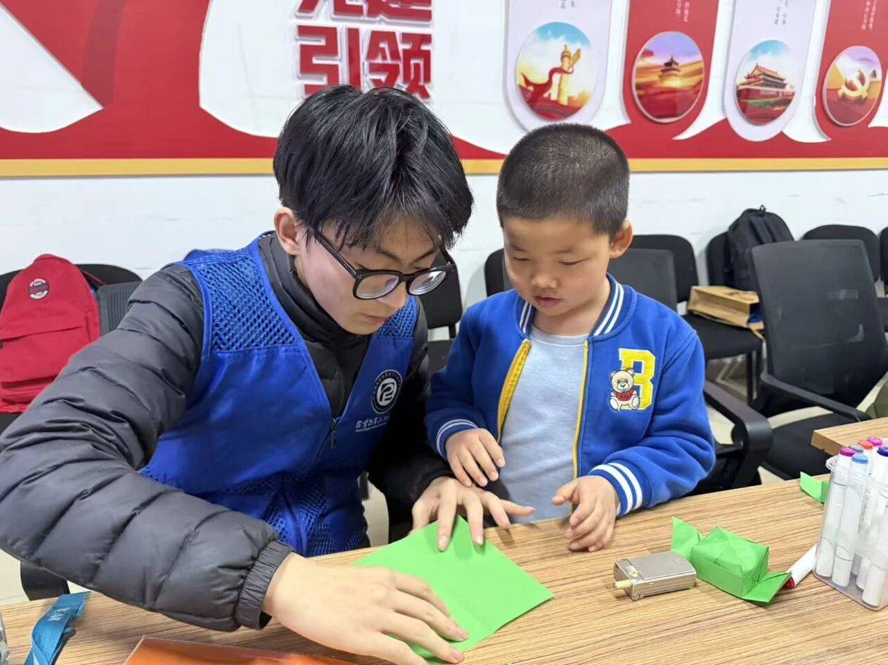 为践行雷锋精神,传递青年关爱,志愿者走进养老中心与社区开展志愿服务活动。活动中,志愿者与老人暖心互动,手把手指导完成红色手工制作,带领开展趣味手指操,细致关注老人情绪,有效缓解其孤独感,让养老场所满溢温馨欢乐。此次实践,不仅让老人们感受到青年群体的温暖关怀,更让志愿者深化了对雷锋精神的理解与践行,锤炼了团队凝聚力,增强了社会责任感。