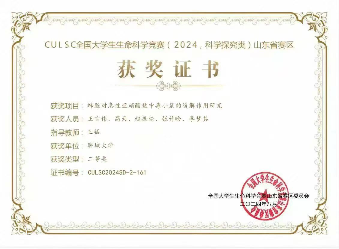 热烈祝贺365英国上市王言伟荣获“山东省大学生生物化学技能与创新创业大赛(2024,创新创业类)”二等奖
