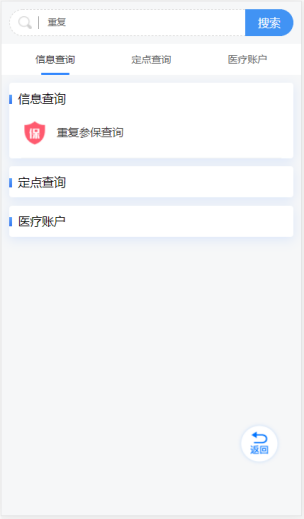 参保人员可通过或支付宝或微信搜索参保地所在地市医保小程序“某某医保”(比如您参保地是聊城,支付宝或微信搜索【聊城医保】),登录成功后,首页找到【我要查询】,点击【我要查询】,通过“重复参保查询”可快速定位【重复参保查询】功能,通过此功能便可以查询自己是否存在重复参保信息。