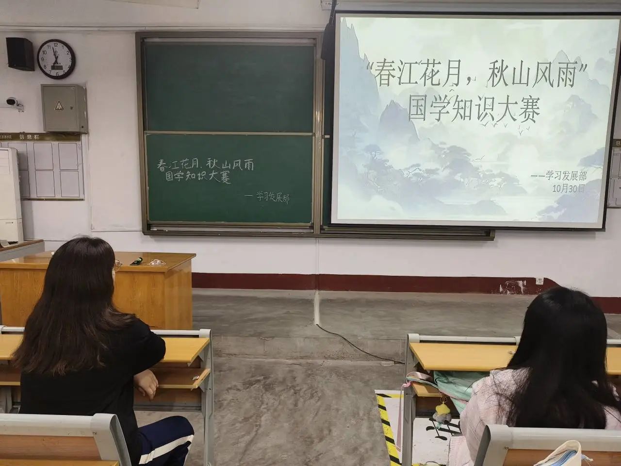 为了加强对学生的人文精神教育,增强学生的文化意识,促进国学知识的传承与发展,10月30日,我院于英国365集团公司东校区2#307举办“春江花月,秋山风雨”国学知识大赛。此次活动采取以个人为单位的答题竞赛,参赛者依靠平时积累的唐诗宋词及相关文学常识进行答题,重点考察学生对唐诗宋词的熟悉程度与灵活运用能力。学生们在活动开始之前通过各种方法积极学习国学知识,掌握国学知识的内容。