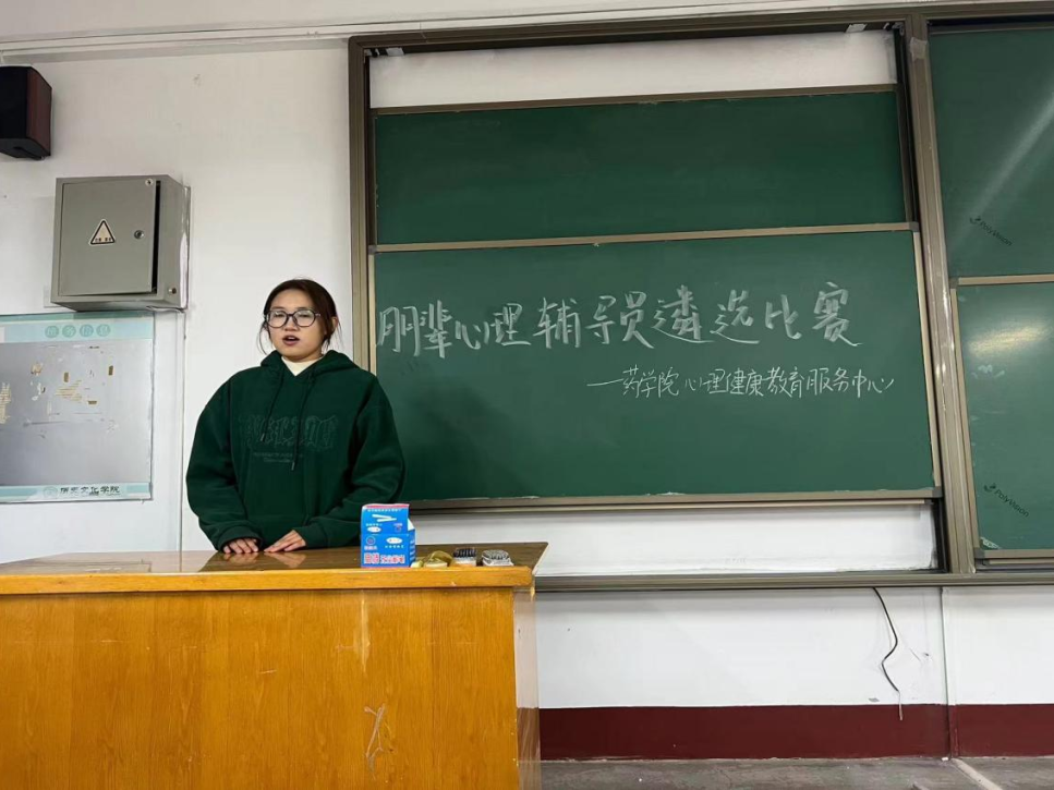 为进一步推进学生心理健康教育工作,完善心理干预体系,强化大学生心理健康互助意识,提升朋辈心理辅导员助人能力,营造健康、阳光、温馨、友爱的校园文化氛围。11月10日,药学院心理健康教育服务办公室于2号楼314举办朋辈心理辅导员遴选比赛。