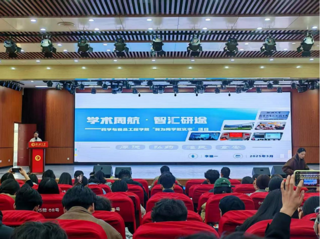 会议伊始,学院代表李福一结合研究生们普遍面临的科研视角单一、跨学科交流匮乏等问题,从项目的背景、体系、内容、创新点及成效等方面进行了全面而深入的介绍,让参会师生对“学术周航·智汇研途”项目有了更为清晰的认识。该项目以“讲座 + 工作坊”为核心驱动力,组织开展一系列跨学科学术交流活动。活动内容广泛覆盖药学、生物学、食品科学、农学等多个学科领域,为不同学科的研究生提供了交流思想、碰撞火花的平台。项目实施以来,学院研究生在科研方面取得了丰硕成果。截至目前,已成功获得10项专利,发表科研论文135篇,其中91篇被SCI收录。这些成果不仅为项目的持续推进提供了有力支撑,也为研究生的职业发展筑牢了根基。