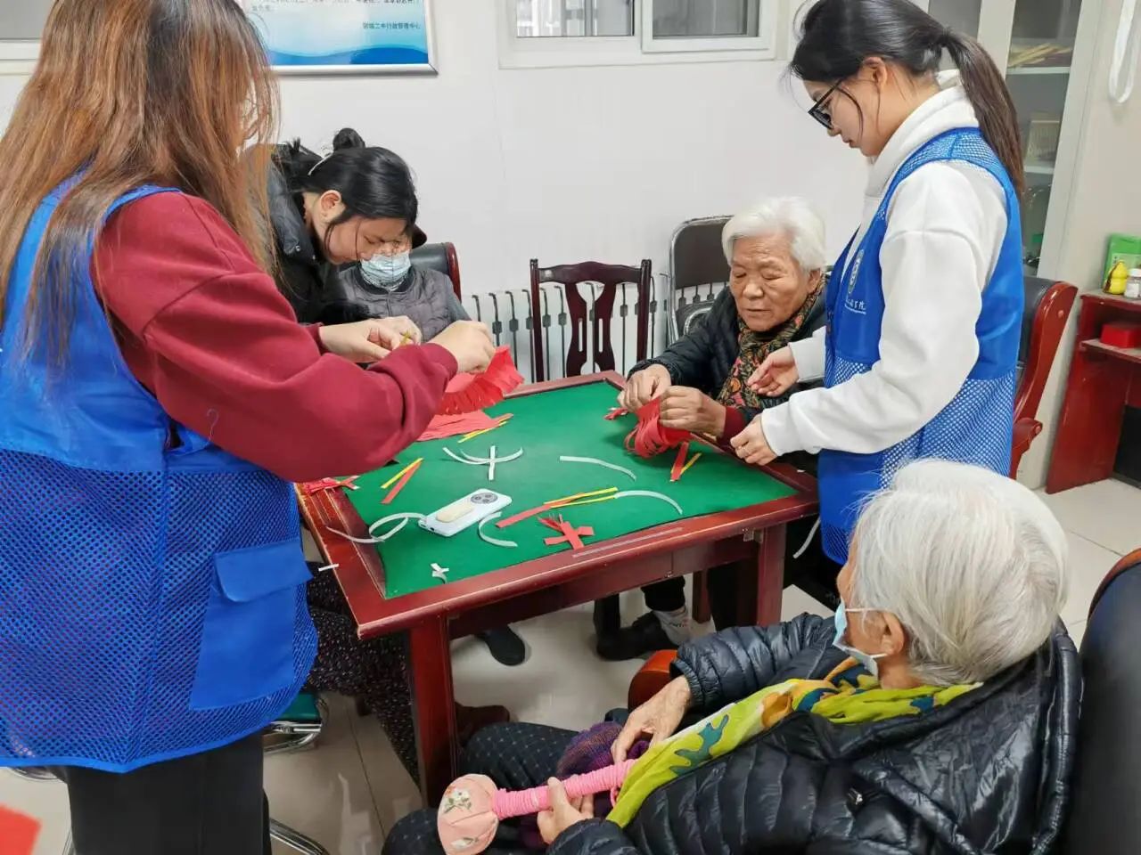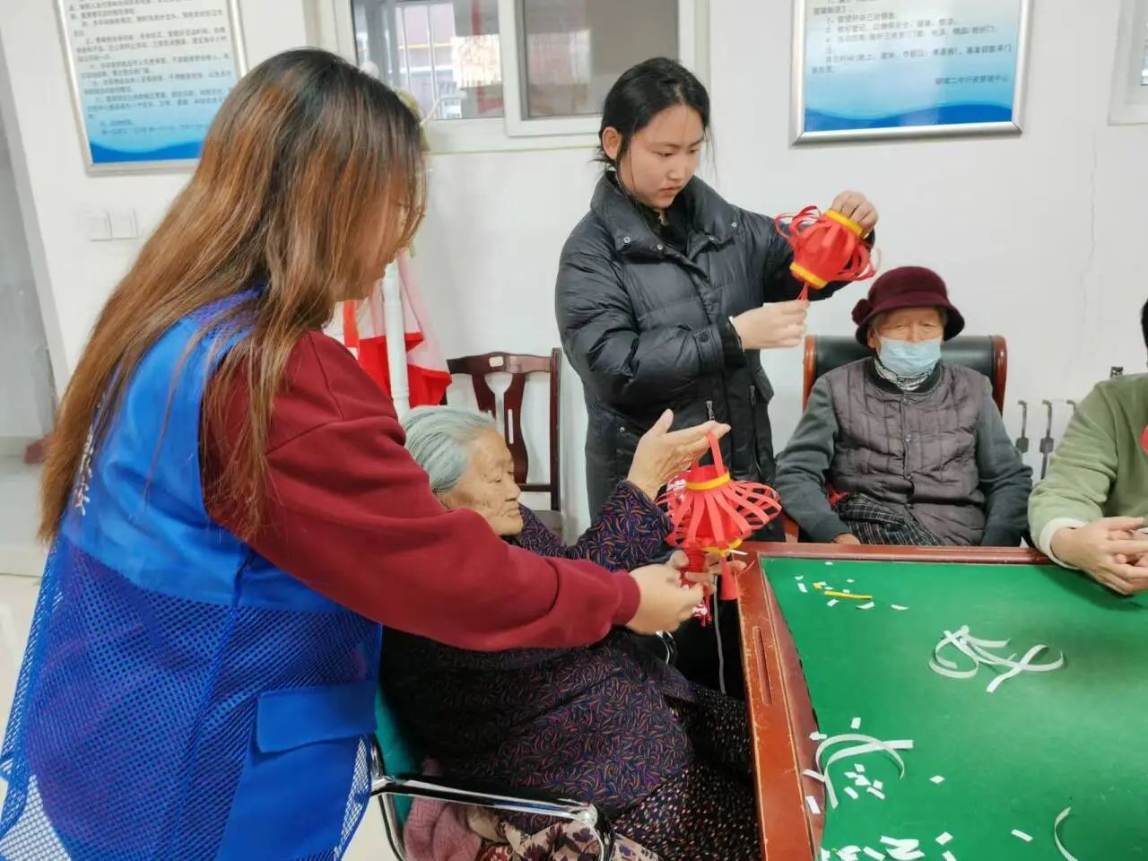 在活动过程中,团队成员给老人分发提前准备好的卡纸、彩笔、剪刀等工具,通过与老人一起动手的方式,教老人制作以元宵为主题的灯笼手工制品。团队成员耐心一对一指导老人折叠、裁剪纸张,张贴双面胶,粘贴卡纸,给手工灯笼上色,老人根据团队成员的指导,积极地投入到学习和制作中。制作结束后,老人纷纷展示自己的作品,共同分享制作经验,分享彼此的创作灵感,活动现场充满了温馨和欢乐的气氛。活动结束后,团队成员纷纷表示通过参与手工制作,深刻体会到了关爱老人的意义,今后会更多地参与爱老助老的活动,用实际行动传递温暖。
