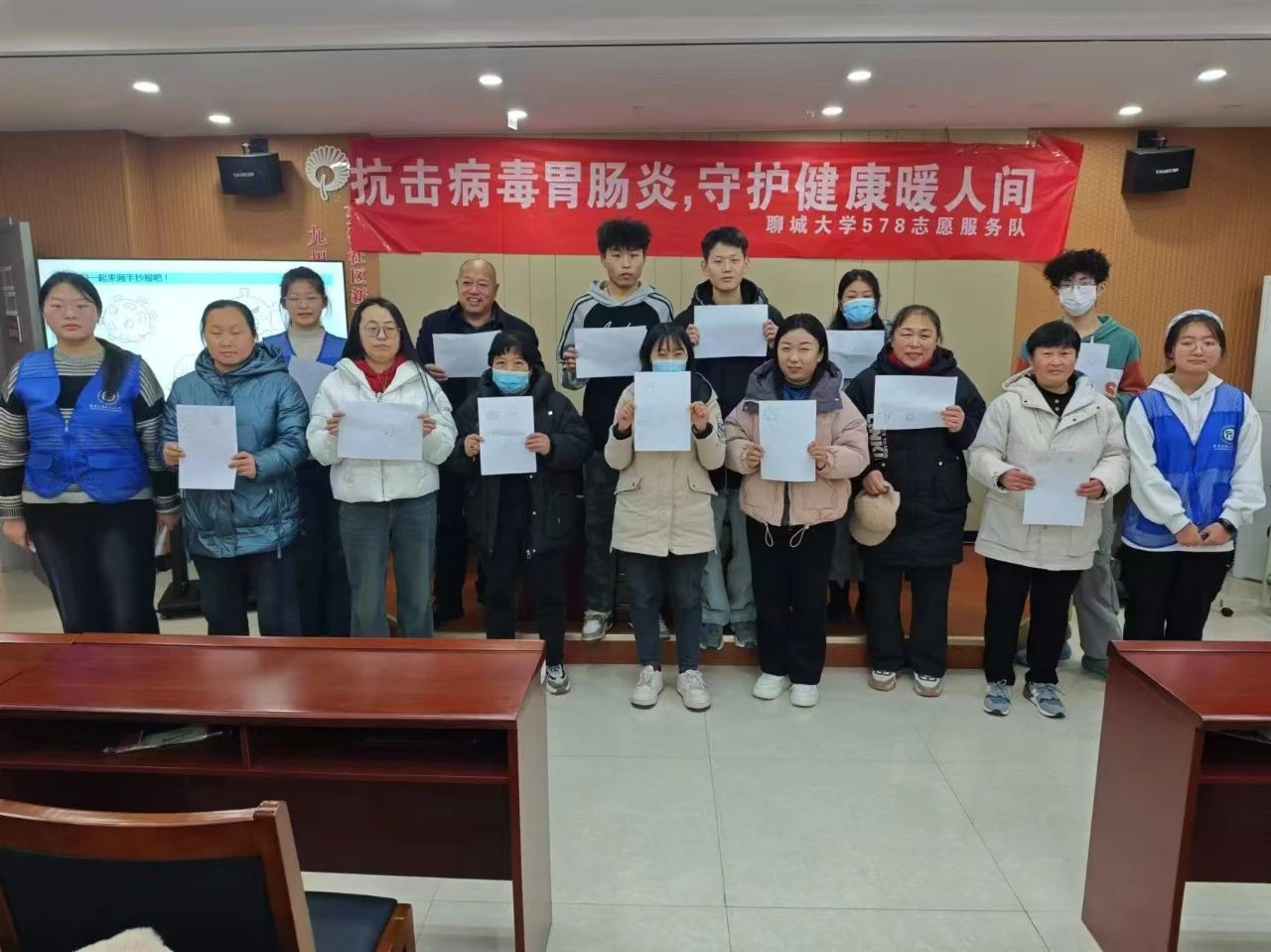 为提升社区居民对胃肠炎病毒的防护意识,营造健康的社会环境,2月6日,我院578志愿者服务队于聊城市东昌府区先锋社区举办以“抗击病毒胃肠炎,守护健康暖人间”为主题的社区实践活动,团队成员积极参与其中。