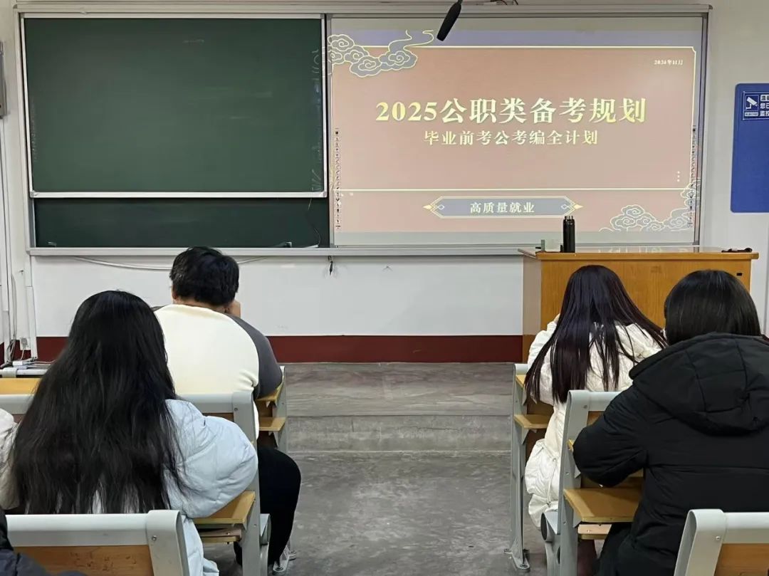 为帮助学生全面了解公职考试,掌握公职考试的技巧和策略,提高学生的应试能力与备考效率,12月23日,我院于英国365集团公司东校区2#212举办2025公职类备考公益讲座。