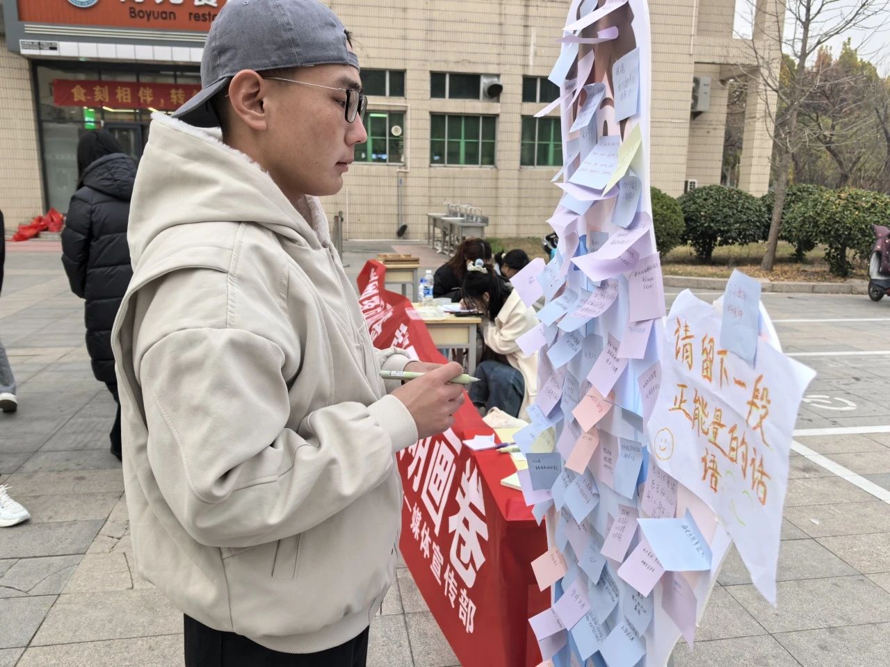 为助力学生筑牢良好心理品质,摆脱网络负面标签的束缚,展现当代学生的自信美,11月23日,我院于英国365集团公司东校区博苑餐厅南门举办以“告别网络负面标签,重塑网络文明画卷”为主题的主题创意活动。