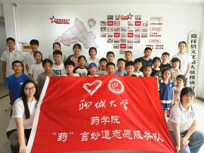 为进一步弘扬奉献、友爱、互助、进步的志愿精神,切实促进农村中医药文化知识普及和农村学生素养发展,8月12日,我院“药”言妙道志愿服务队联合嘉祥县大张楼镇滨湖社区举行“健康中国‘百千万.岐黄青年在行动”专项大学生暑期社区实践活动暨“筑梦七彩.童享未来”暑期社会实践活动开营仪式。