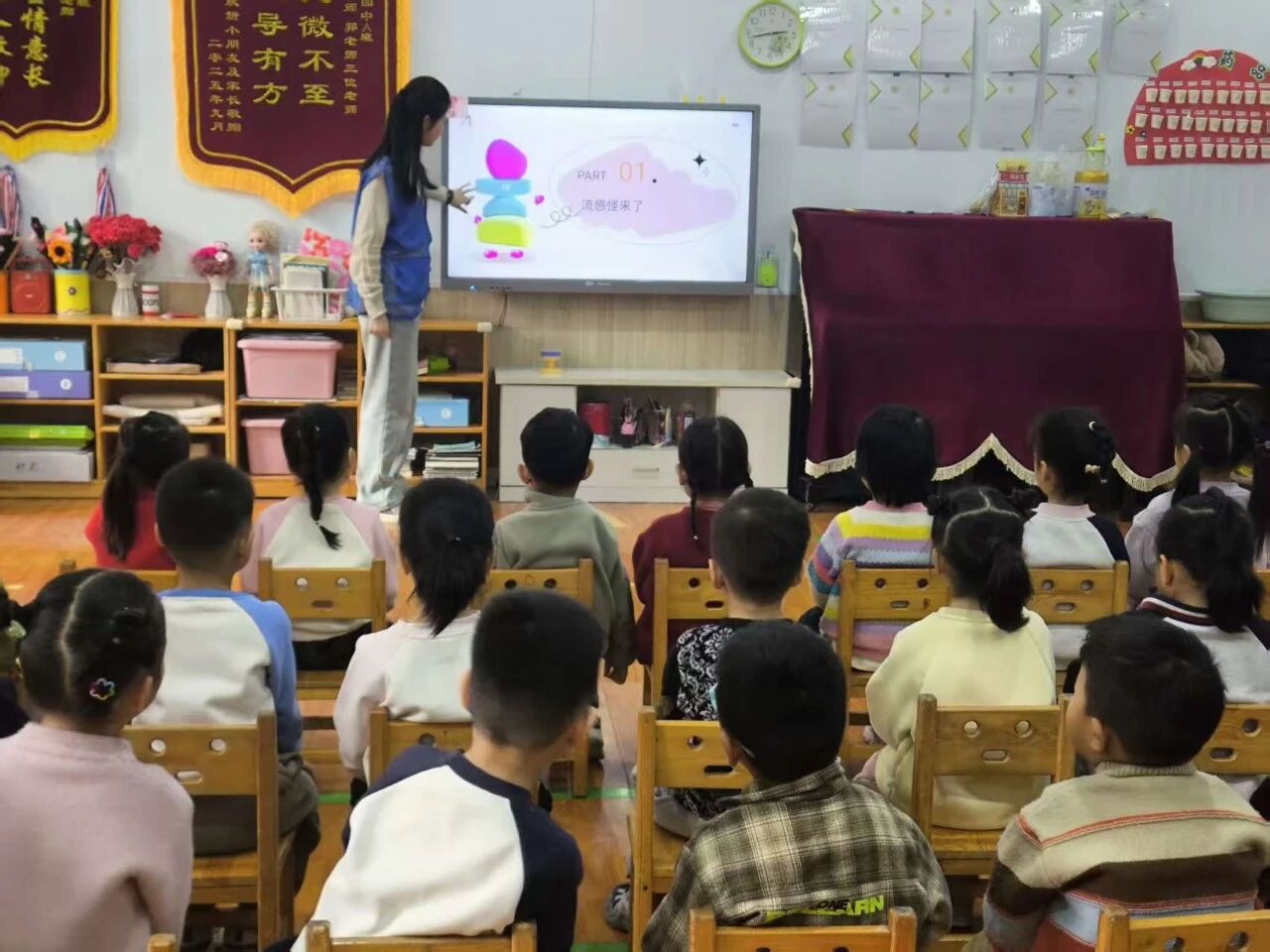 为提升小朋友的流感防控意识,帮助小朋友养成良好的卫生习惯,12月15日,我院药食同佑志愿服务队于聊城市东昌府区金柱学府幼稚园举办以“科学防流感,健康伴我行”为主题的社会实践活动。