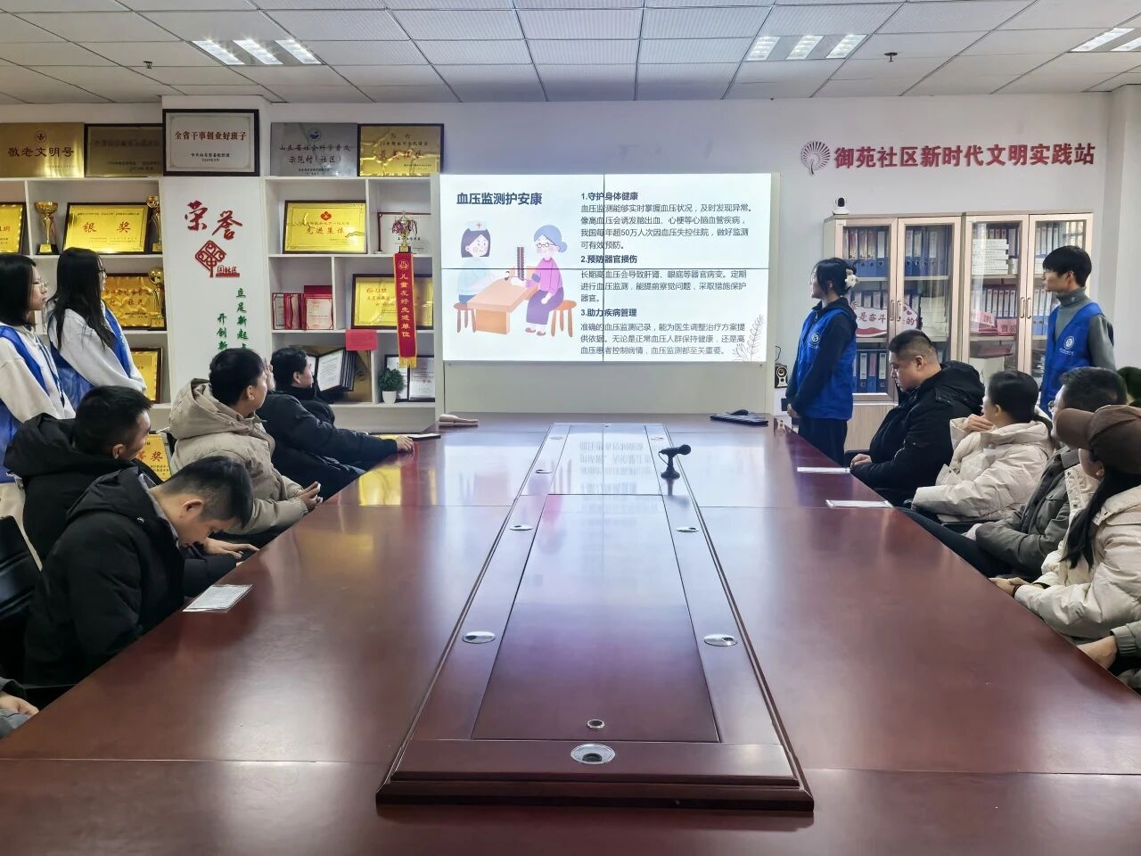 为提升学生实践能力,助力社区居民筑牢健康防护屏障,1月25日,我院闪药青春志愿服务队于聊城市东昌府区御苑社区举办以“血压监测进社区,健康守护零距离”为主题的社区实践活动。