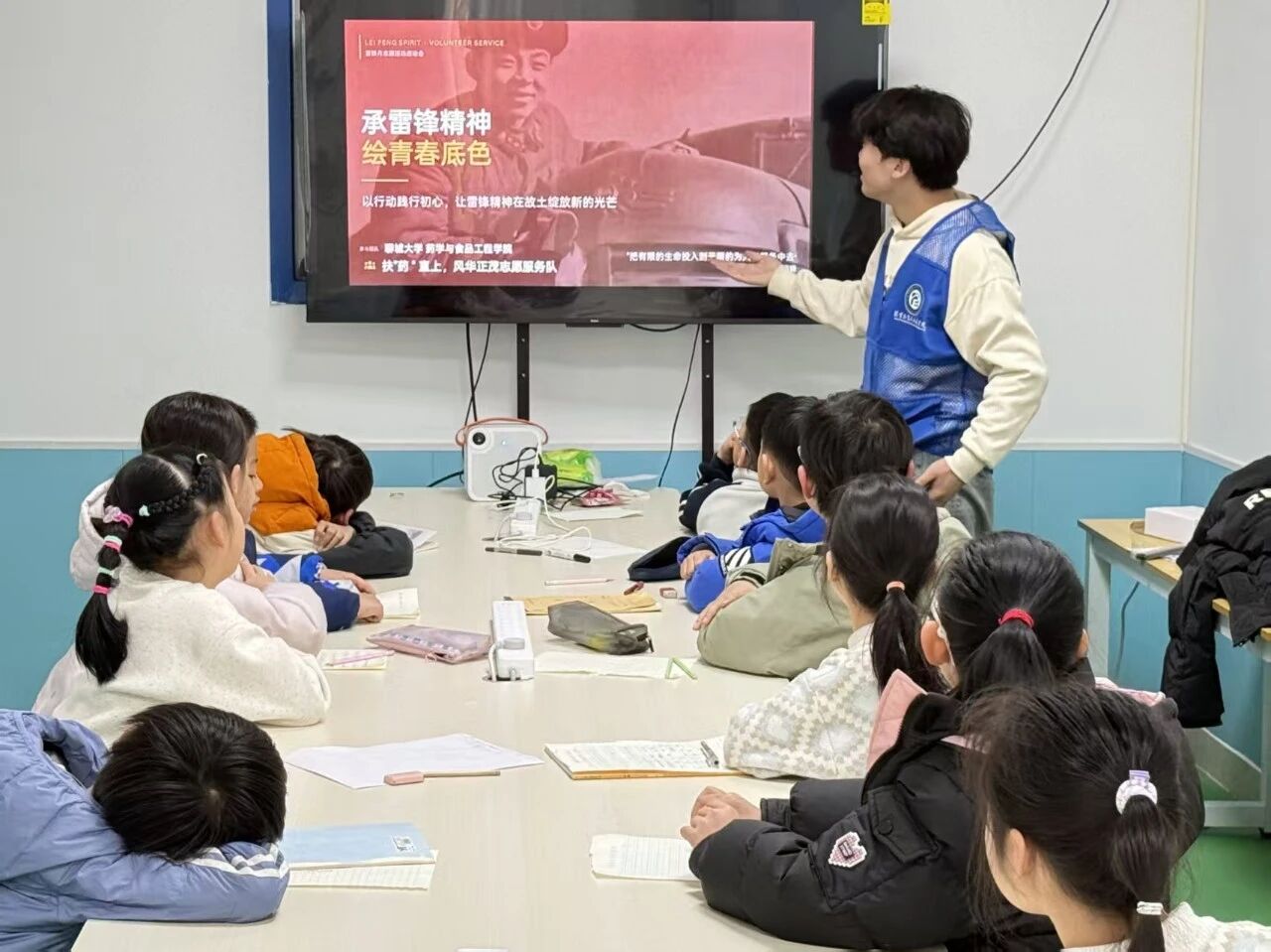 活动伊始,团队成员以雷锋精神为核心切入点,通过梳理雷锋的历史事迹、结合新时代践行雷锋精神的鲜活案例,为小朋友细致讲解了雷锋精神内涵与时代价值,引导小朋友深刻理解传承雷锋精神的重要意义。趣味问答环节中,团队成员设置一系列趣味问题,引导小朋友主动分享学习心得与个人理解,在轻松愉悦的氛围中进一步深化思想认知。随后,团队成员为小朋友播放雷锋主题动画短片,以生动直观的影像形式讲述雷锋事迹,使雷锋精神以更贴合小朋友认知特点的方式入脑入心。活动结束后,社区负责人表示,此次活动既帮助小朋友深入了解雷锋事迹,理解雷锋精神的内涵,又为小朋友培养了良好的品德,树立了正确的价值观。