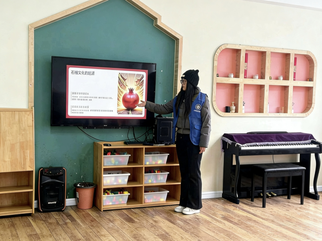 活动伊始,团队成员为小朋友讲解了石榴的文化寓意、历史渊源及本地石榴非遗技艺的发展脉络,并带领小朋友观摩后进行石榴剪纸、石榴造型手工制作,小朋友从折叠彩纸、勾勒轮廓到细致裁剪等过程踊跃参与,现场氛围热烈,让小朋友在动手实践中感受到了传统技艺的独特魅力。随后,团队成员向社区居民阐述了石榴树的冬季修剪、土壤管理、松土施肥等养护知识,同时为社区居民介绍了石榴的生长习性与文化内涵,让社区居民进一步了解了石榴背后的传统文化寓意,加深了社区居民对石榴种植与文化价值的认知与理解。