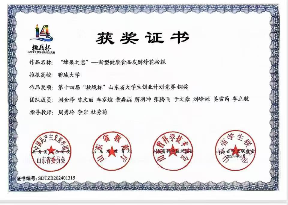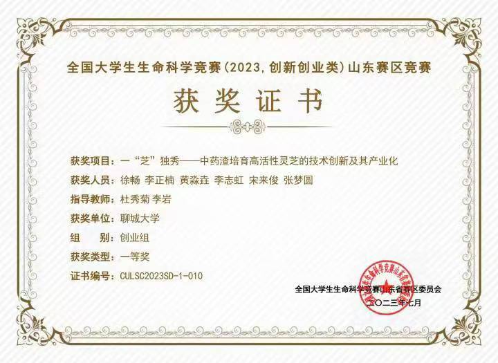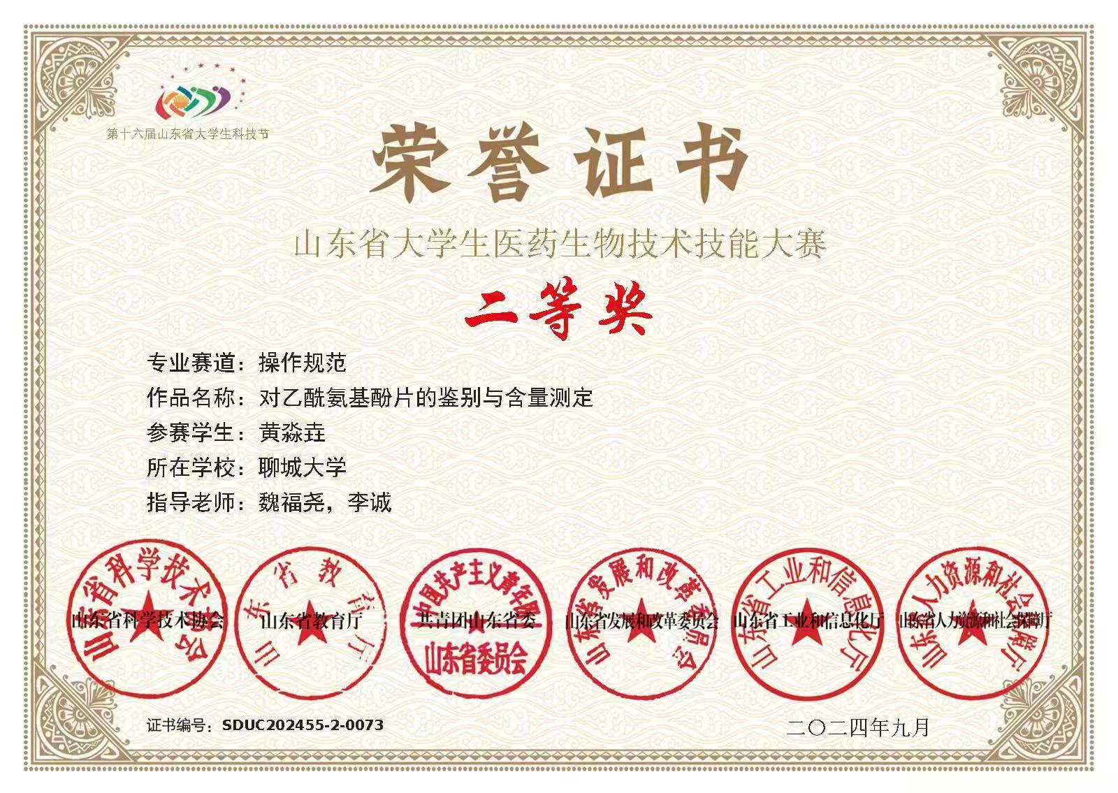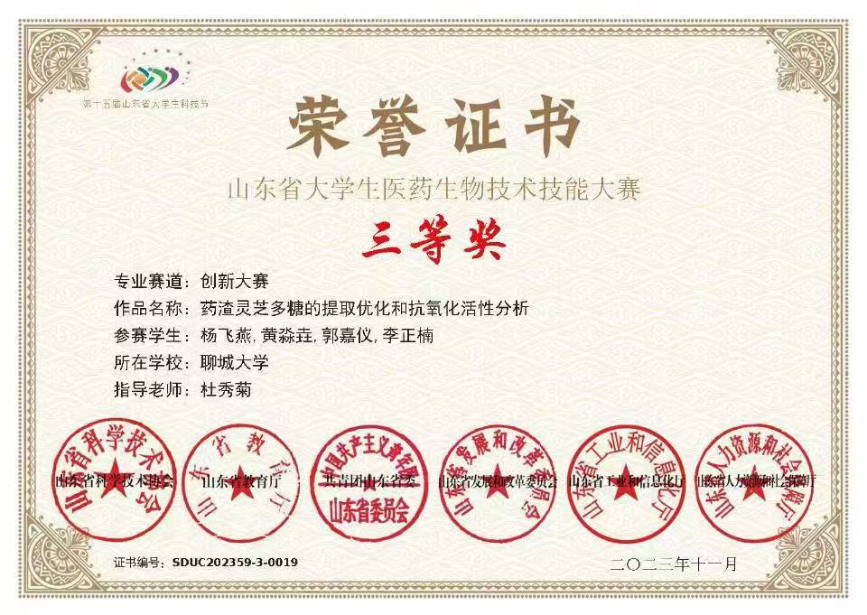 热烈祝贺365英国上市黄淼垚荣获“山东省大学生生物化学技能与创新创业大赛(2023,创新创业类)”三等奖