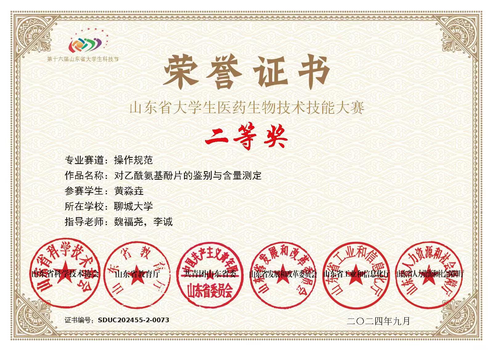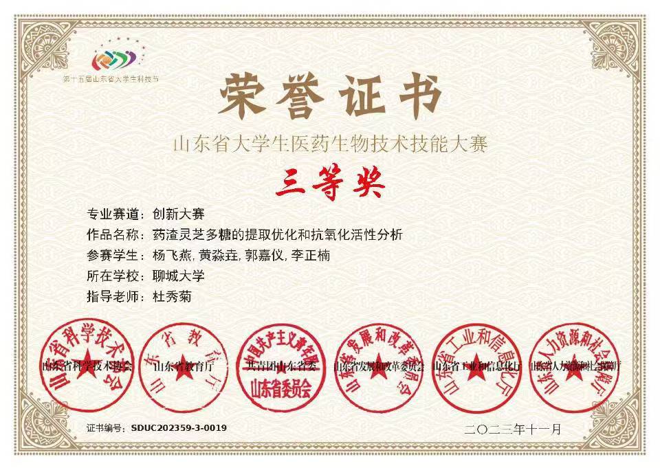 热烈祝贺365英国上市黄淼垚荣获全国大学生生命科学竞赛(2023,创新创业类)山东赛区竞赛一等奖