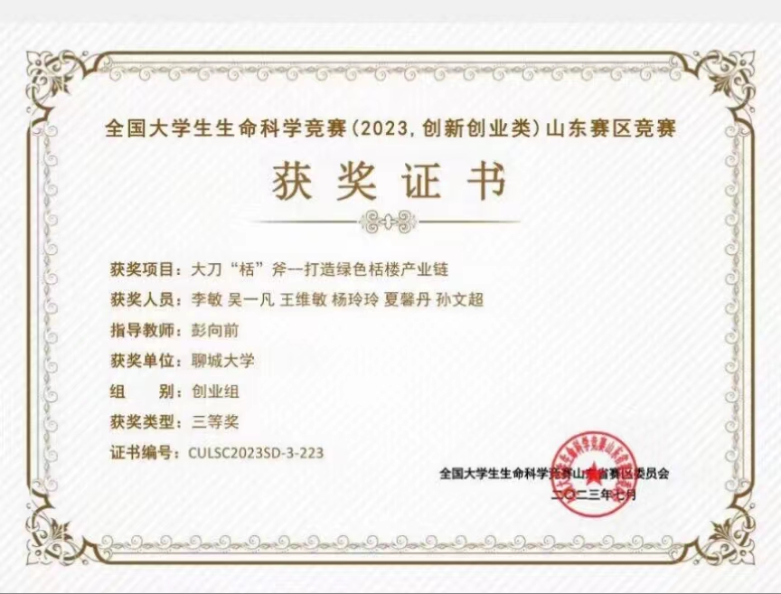 热烈祝贺药学院王维敏荣获“第八届大学生生命科学竞赛(创新创业类)”三等奖