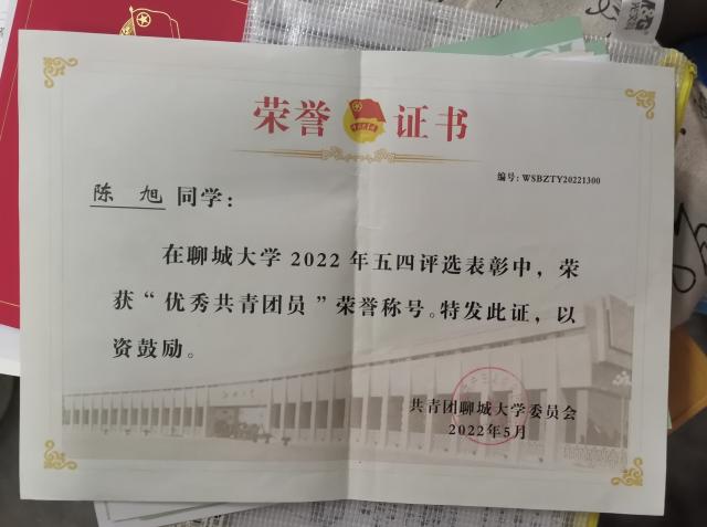 热烈祝贺药学院陈旭荣获“英国365集团公司校级优秀共青团员”荣誉称号