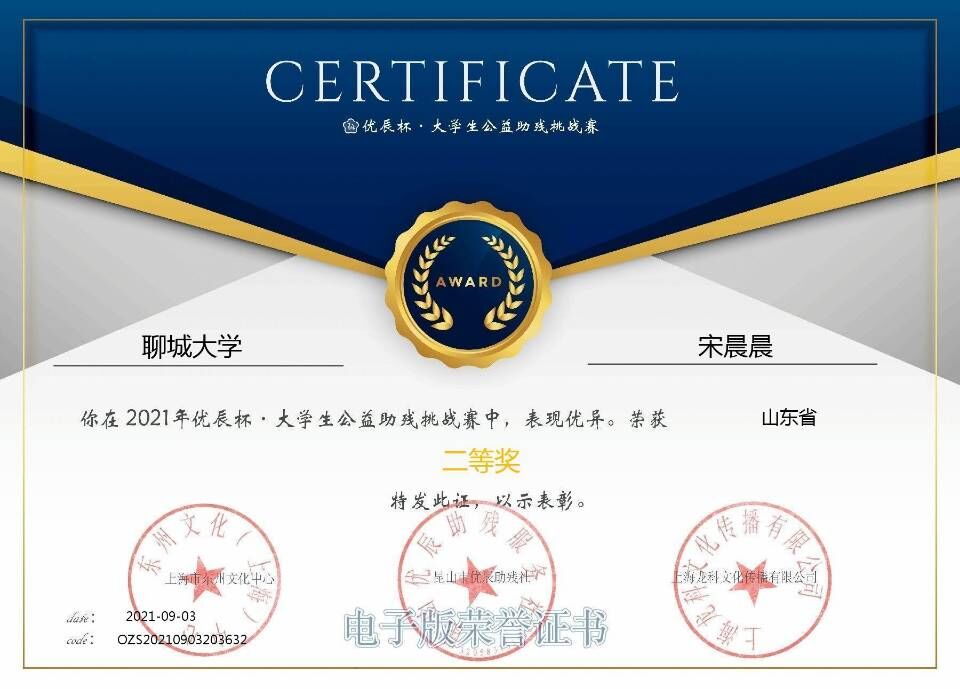 热烈祝贺药学院宋晨晨荣获2021年优辰杯·大学生公益助残挑战赛二等奖