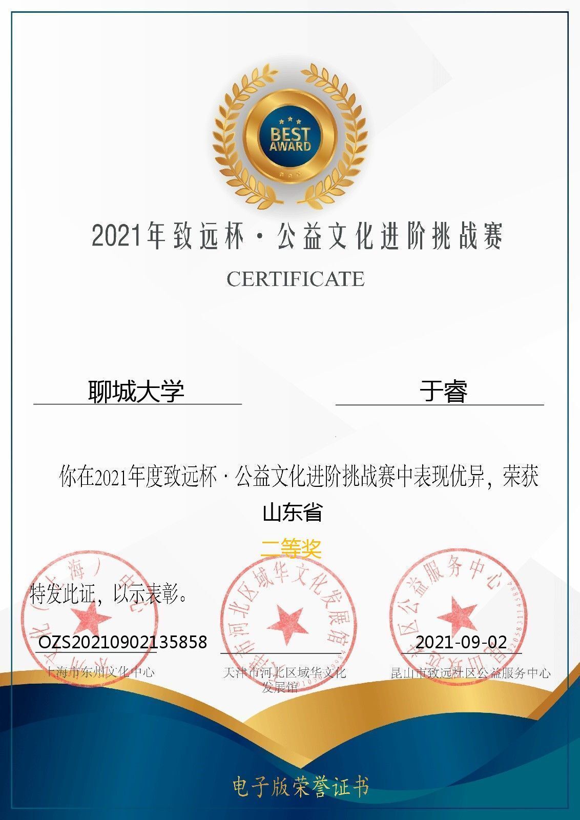 热烈祝贺药学院于睿荣获2021年致远杯·公益文化进阶挑战赛二等奖