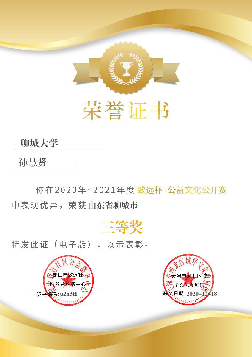 我院孙慧贤获“致远杯公益文化公开赛”三等奖