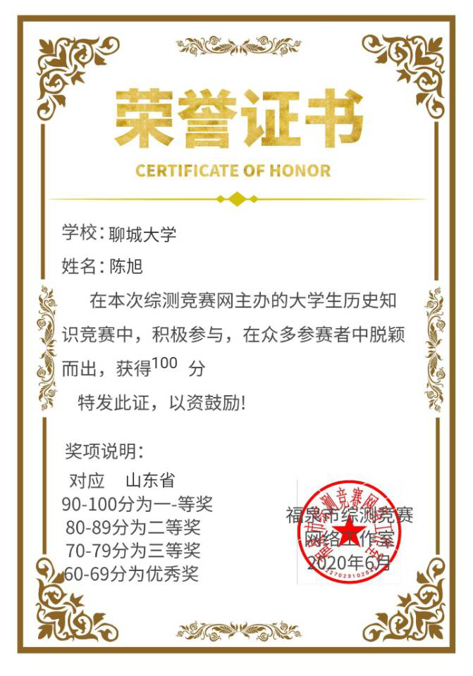 我院陈旭获“大学生历史知识竞赛”一等奖