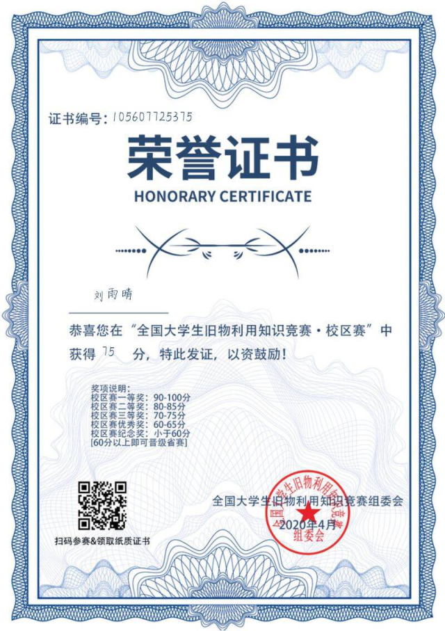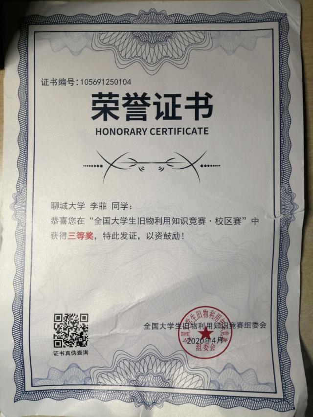 “全国大学生旧物利用知识竞赛”药学院获奖学生
