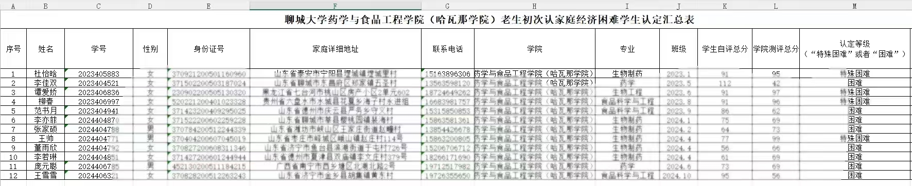 365英国上市(哈瓦那学院)老生初次认家庭经济困难学生认定汇总表