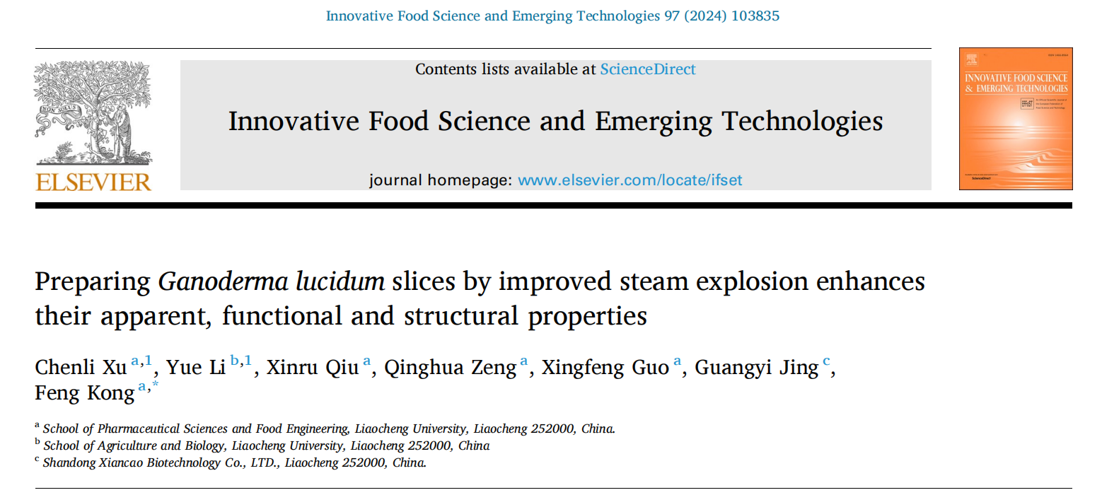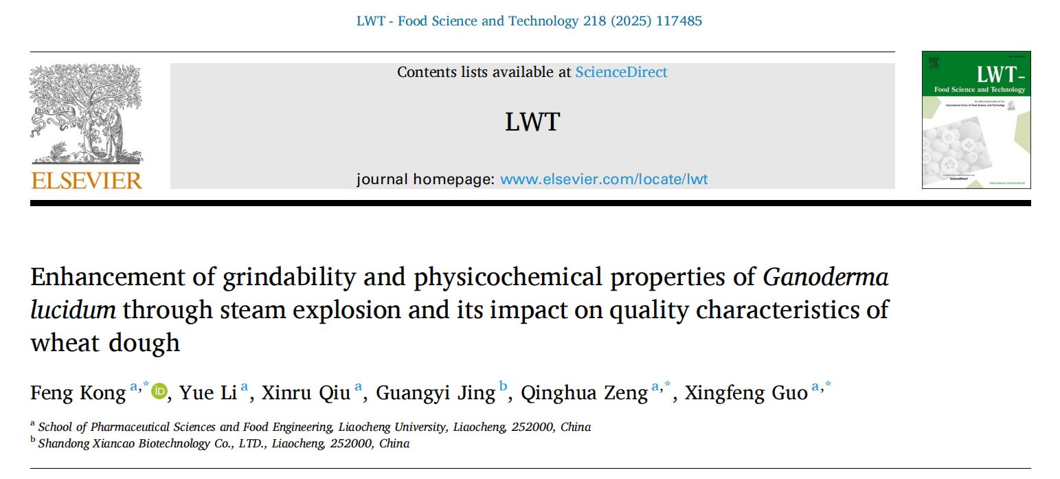 近期,英国365集团公司农产品加工与副产物高值化利用创新团队在灵芝精深加工研究领域取得新进展。团队成员通过对灵芝原料进行汽爆破壁处理,有效促进灵芝功能成分的释放,提高了灵芝的食用和药用价值,同时,改善了灵芝子实体粉体的性能,提高了灵芝子实体的加工适应性,有助于促进灵芝多元化功能性食品开发。系列研究成果分别以“Preparing Ganoderma lucidum slices by improved steam explosion enhances their apparent, functional and structural properties”和“Enhancement of grindability and physicochemical properties of Ganoderma lucidum through steam explosion and its impact on quality characteristics of wheat dough”为题发表在《Innovative Food Science & Emerging Technologies》(中科院一区TOP期刊,影响因子6.3)和《LWT-Food Science and Technology》(中科院一区TOP期刊,影响因子6.0)。