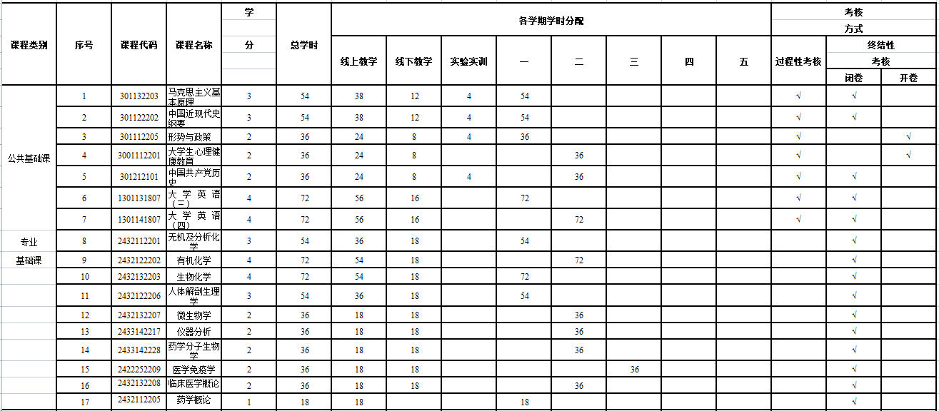 英国365集团公司高等学历继续教育药学专业“专升本”办学形式为“非脱产”,灵活采取线上线下相结合的教学方式,缓解在职学员的工学矛盾。教学课程安排如下: