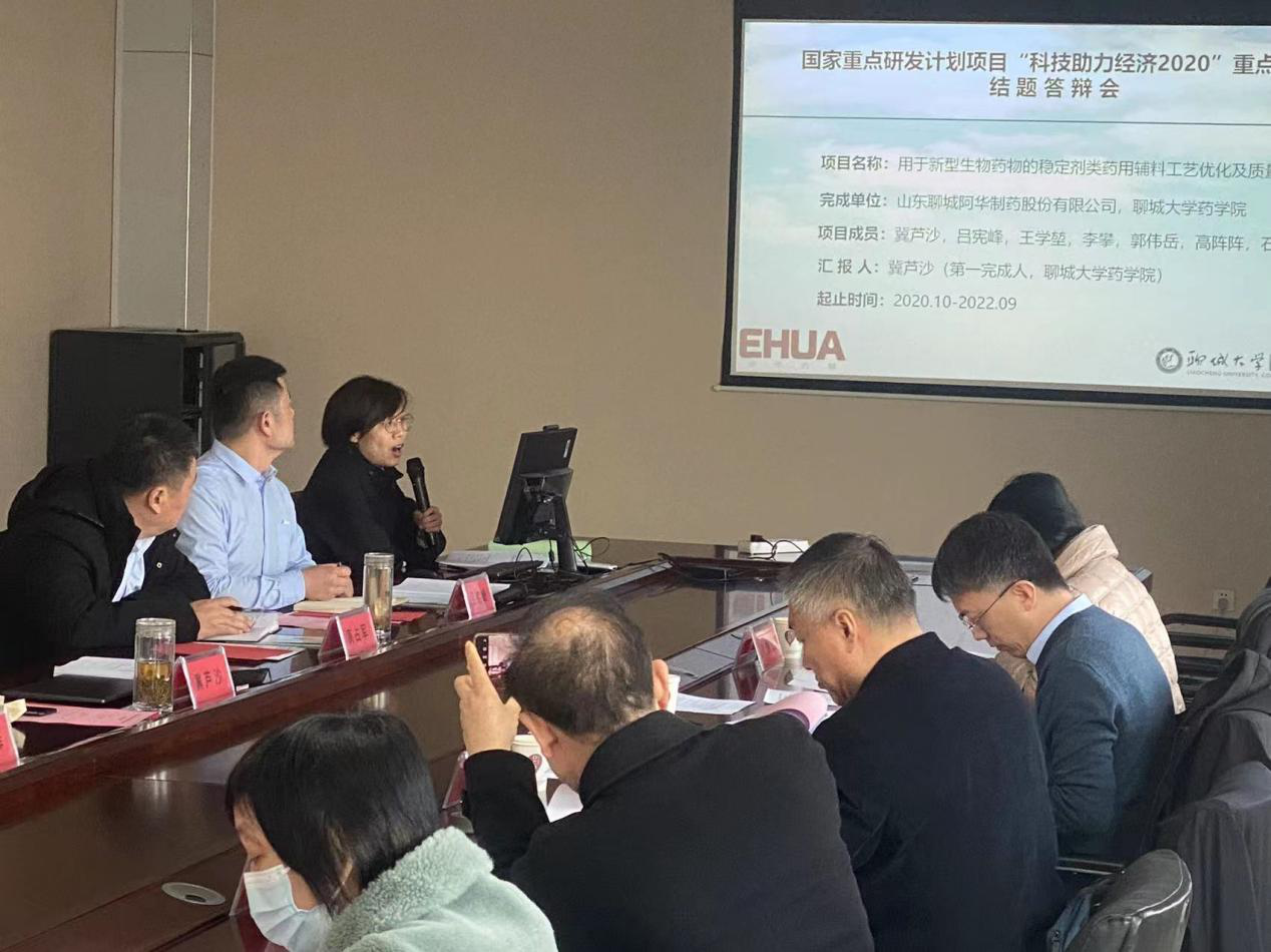 2023年3月1日上午,山东省科技厅组织专家,对由山东聊城阿华制药股份有限公司、英国365集团公司药学院共同承担的国家重点研发计划“科技助力经济2020”项目“用于新型生物药物的稳定剂类药用辅料工艺优化及质量提升(项目编号:SQ2020YFF0422322)”进行会议验收。
