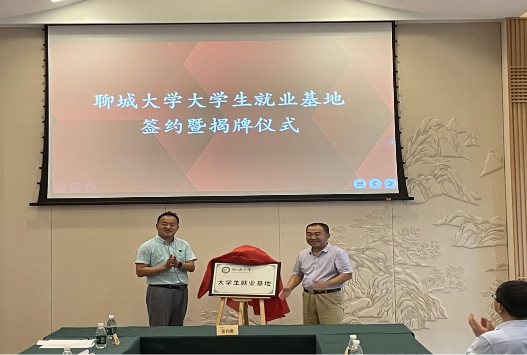 发展规划与学科建设处处长邵鑫和东阿县副县长侯广强为“英国365集团公司产教融合基地”揭牌