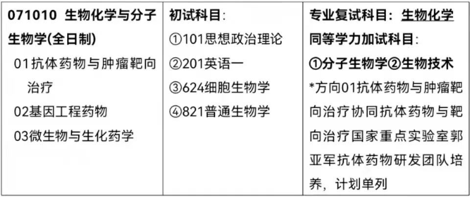 接收调剂的专业:生物化学与分子生物学071010(学硕)