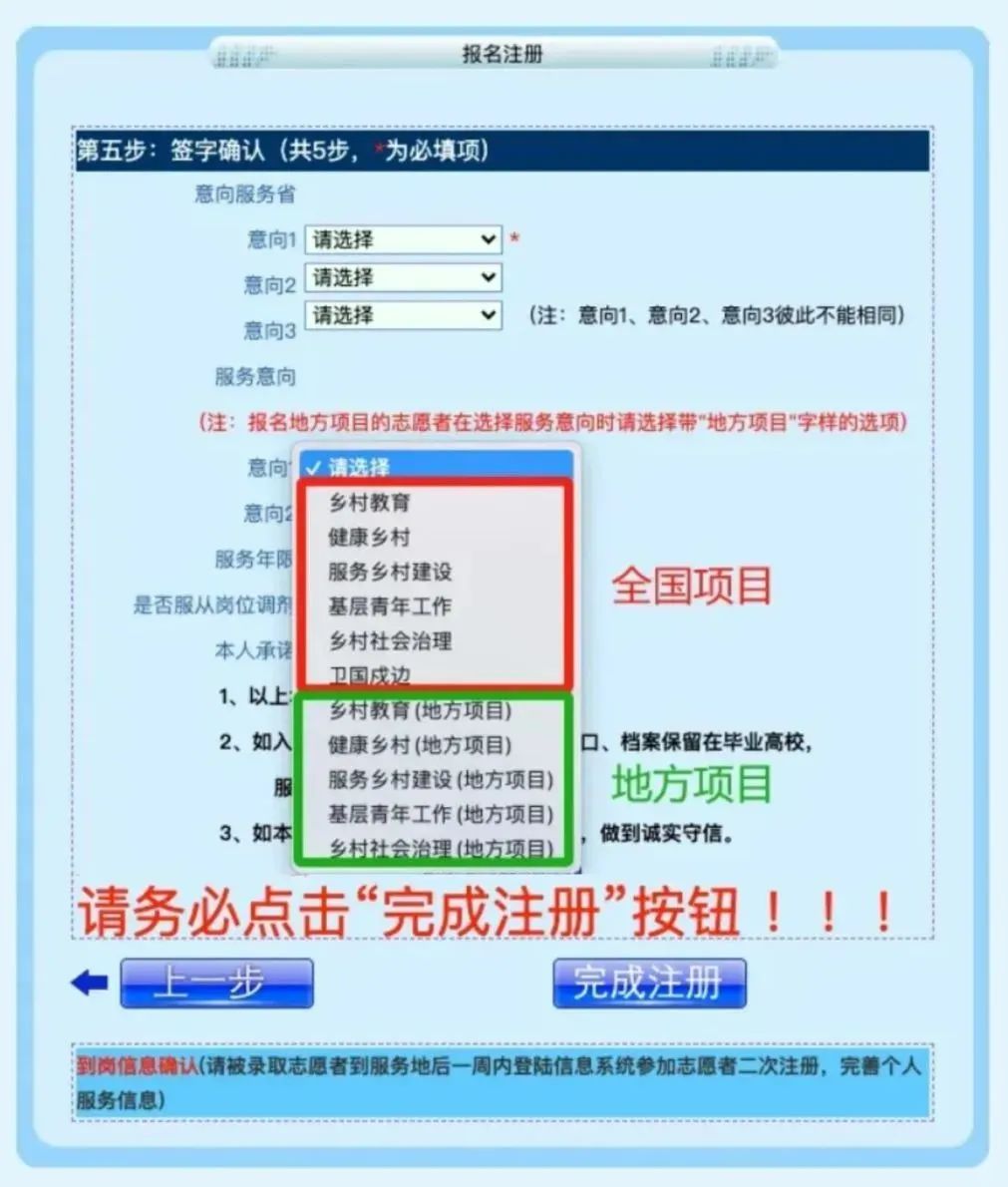 如果你想报名西部计划全国项目,请在选择岗位专项时选择不带“地方项目”的选项;如果你想报名西部计划地方项目,请在选择岗位专项时选择标有“地方项目”的选项。
