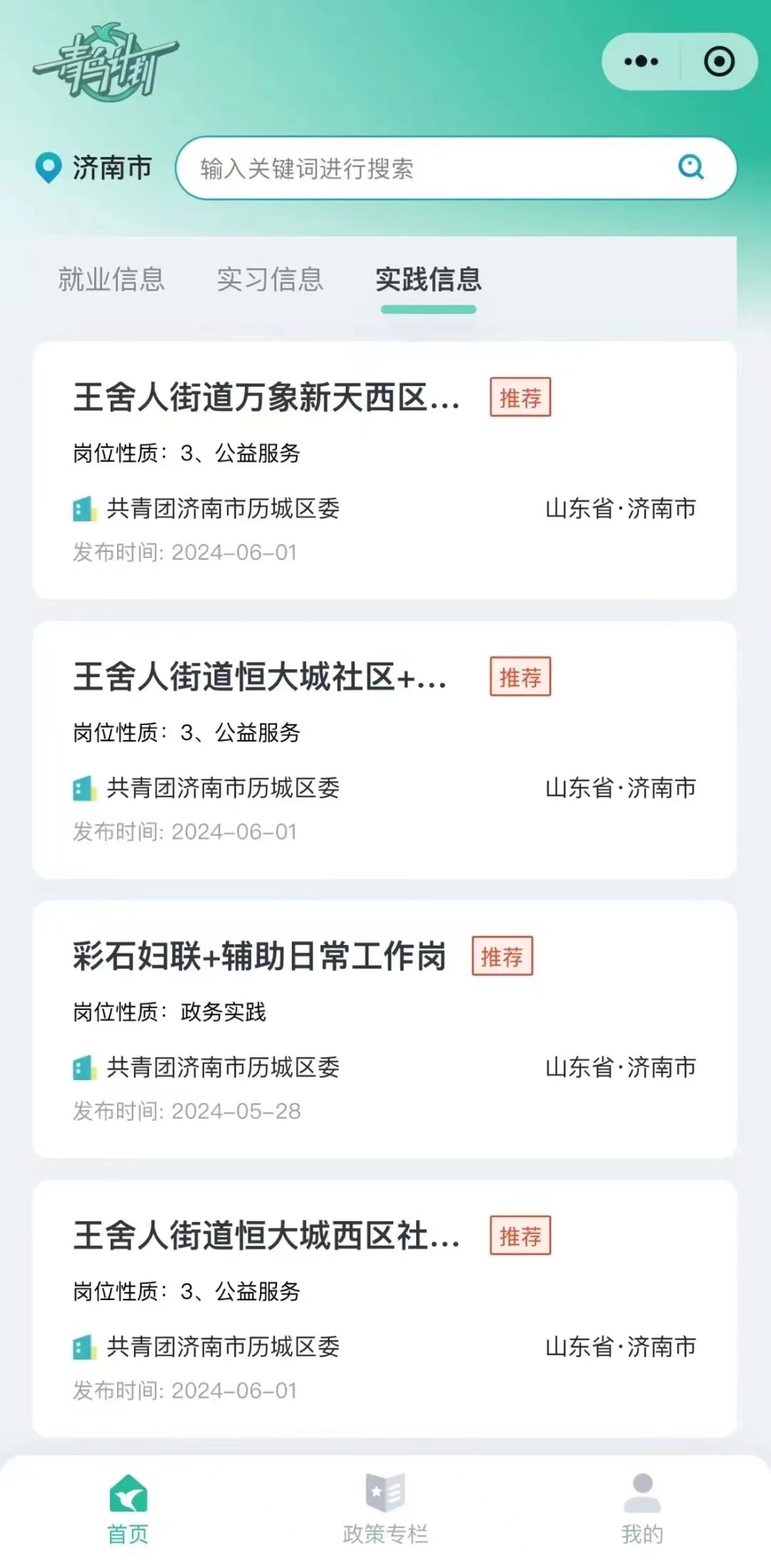 2.在此界面选择你所在参与的区域(比如济南市历城区)并查看岗位需求。