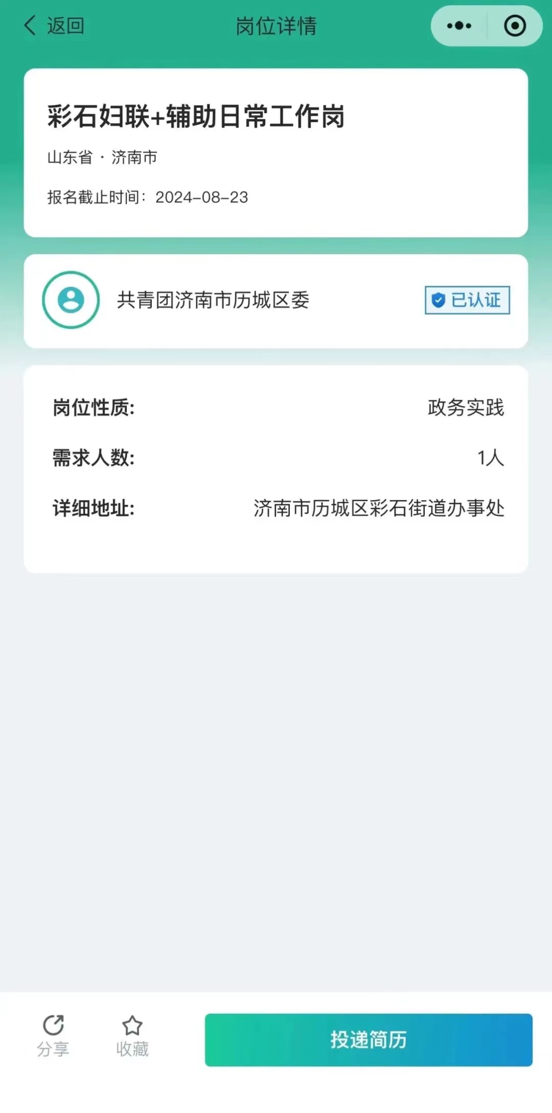 3.如果想参加某一岗位,可以点击进入查看详细信息,根据自身情况投递简历。