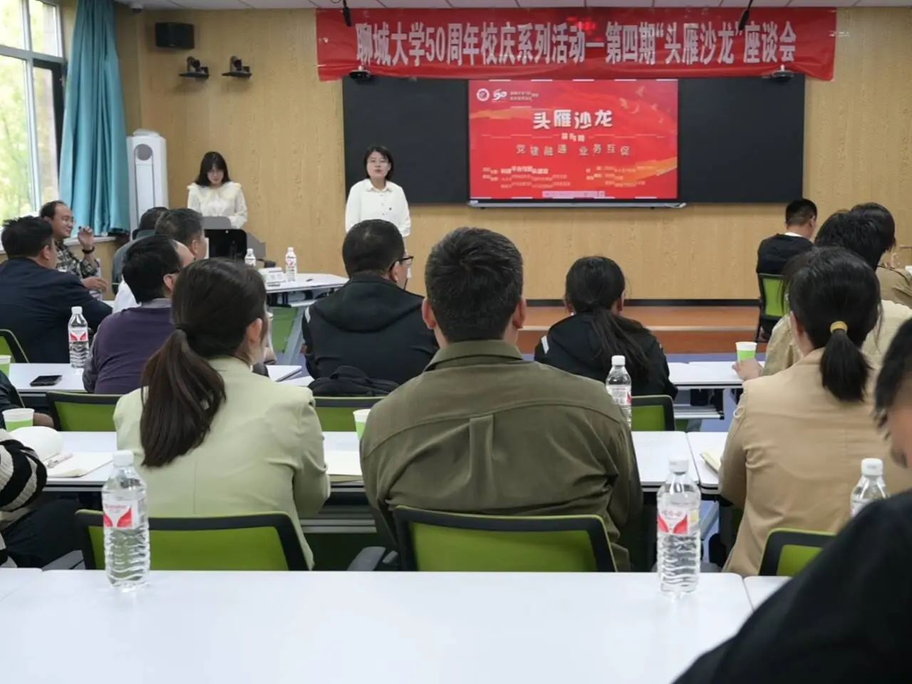 此次招聘主要面向省内知名药企,以提供链式服务为主要方式,精准对接企业需求,畅通我院毕业生求职渠道,促进人岗精准匹配,13家企业带来涵盖生产管理、质量管理、药物制备、药品研发、市场分析员、临床监察员等领域共400余个岗位,招聘岗位专业契合度高、待遇保障好、发展前景广,前来应聘的毕业生纷纷与用人单位对接自荐,在用人单位展位前排队洽谈、双向选择,主动了解单位需求,各单位代表也耐心解答毕业生疑惑,为毕业生们提供宝贵的就业信息。本次“头雁沙龙”活动以科研平台与团队建设为主题,张振威博士首先围绕驴的生态饲养、繁殖育种、环境控制这三个核心领域,从团队基本情况和团队管理机制展开交流。随后李路胜教授结合动物营养与饲料科学领域及自身经历总结了四点服务社会经验:一是求学经历与生产实践之间存在鸿沟,需要摆正心态;二是合作应选择对等、合适的公司;三是合作是双赢的;四是共同申请项目不代表深度合作,应立足专业,深度挖掘合作点才是长久之计。药学院执行院长冀芦莎教授向大家分享了药学院平台和团队建设历程与“十四五”规划,从学院发展历程及基本情况、学院特色、学院发展规划、科技成果转化项目四方面作了分享交流。董惠钧教授介绍了服务社会的经验和心得,他首先强调只有做好人才培养和科学研究才能做好社会服务,结合与企业合作的经历提出三点建议:一是应树立产业化思维,培育商业化视角;二是选对方向,坚持长期主义;三是要加强宣传交流,树立声誉。