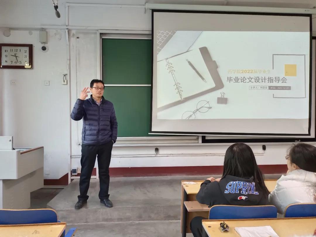 为增强学生对毕业论文设计的了解,提高学生毕业论文的写作质量,12月28日,药学院于英国365集团公司东校区2#209举办毕业论文设计指导会,刘国运副院长担任指导教师,2022届全体毕业生参与此次指导会。