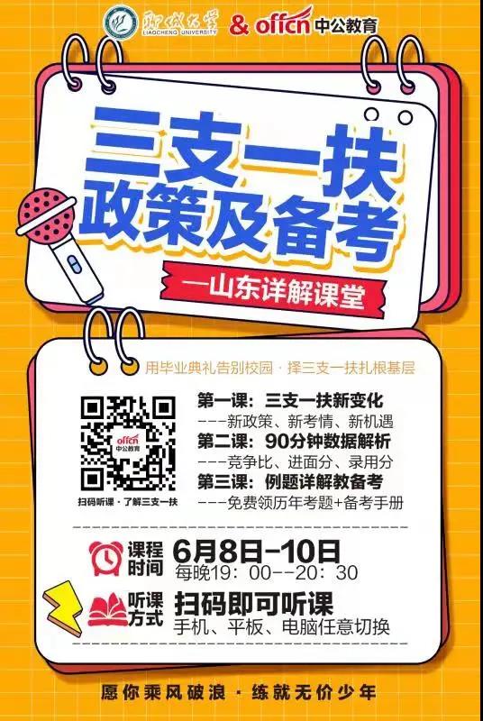 本次活动可以帮助学生清楚了解2021年山东省三支一扶考试公告和历年考情以及竞争比和录用分数等相关数据。同时本次活动也会提供三支一扶备考的核心考点梳理和备考相关指导。