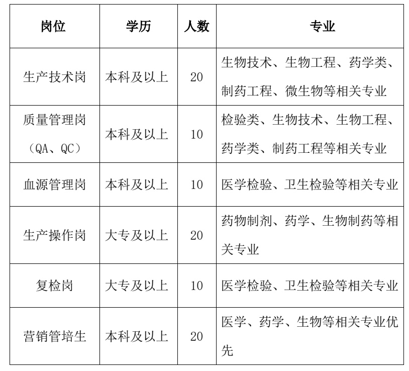接收简历邮箱:hryangyong@chinabiologic.com,或登录齐鲁人才网、智联招聘搜索“山东泰邦生物”投递简历。